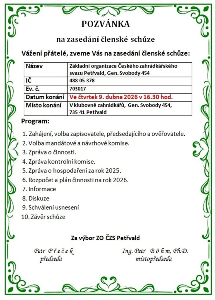 Výroční členská schůze (je jednou za rok, info o uplynulém roce, hospodaření, akce, plán na další rok…. ale hlavně chlebíček / zákusek / kafe / čaj … )